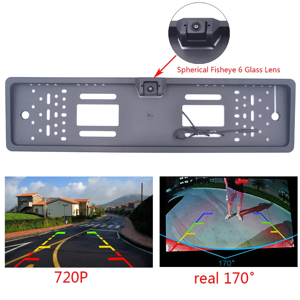 .Images of EU Car License Plate Frame Rear View Camera HD 720P Night Vision Waterproof Camera Car Parking Reversing Auxiliary Cameras